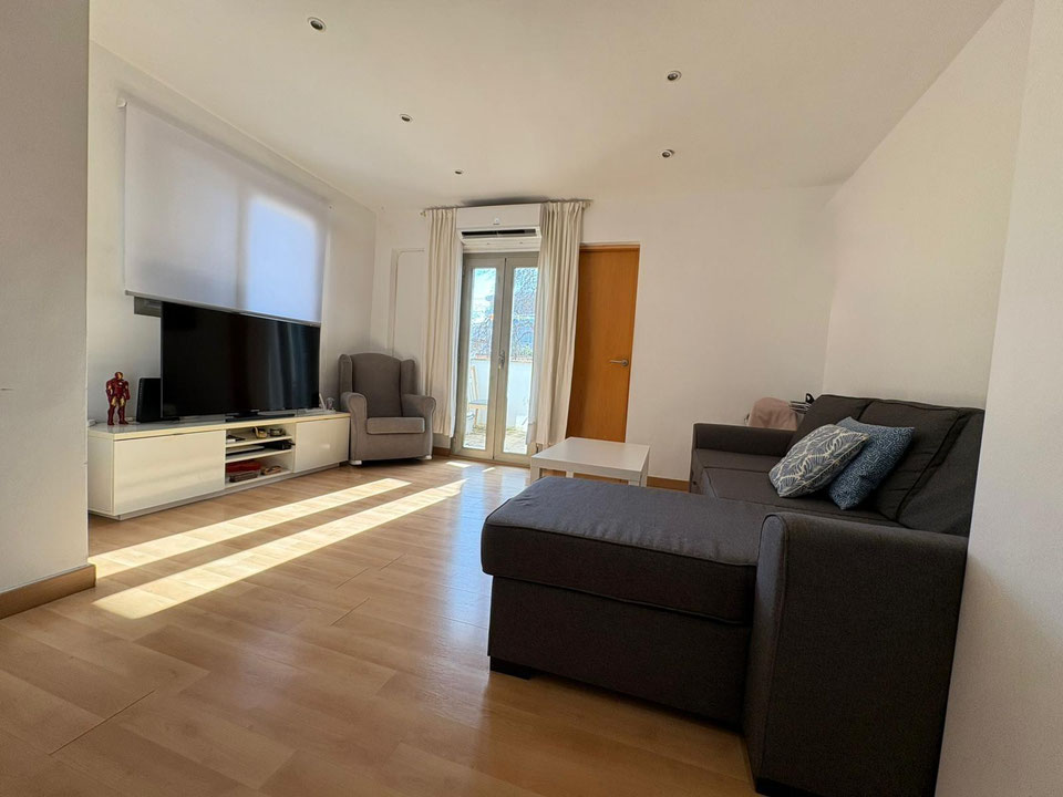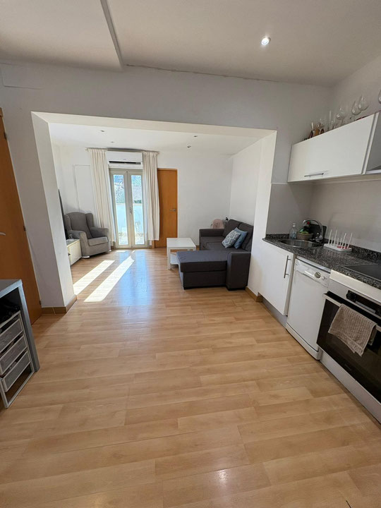 Vivienda luminosa y acogedora compuesta por dos dormitorios, uno doble y otro individual, un amplio salón-comedor equipado con aire acondicionado y calefacción, cocina integrada de concepto abierto y un baño de generosas dimensiones.