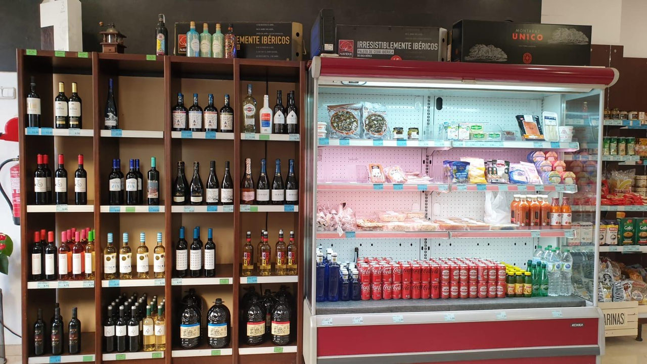 - Una zona de negocio a pie de calle, con dos grandes ventanales, estanterías para la exposición de productos, vitrinas y mostradores frigoríficos para la venta.