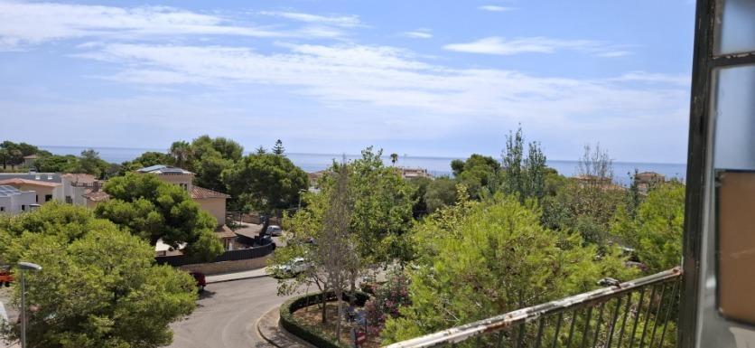 Tercer piso sin ascensor para reformar en Avenida Sa Fonera, 29 con vistas al mar. Tiene 89m2 construídos, según catastro, distrinuidos en salón-comedor con chimenea y salida a balcón, 3 habitaciones, cocina independiente amueblada con lavadero y 1 baño con ducha.